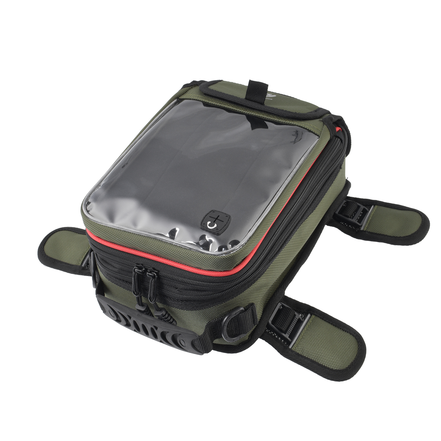 ナビゲーション使用に便利なナビポケット付きの手頃なサイズのタンクバッグ。
